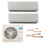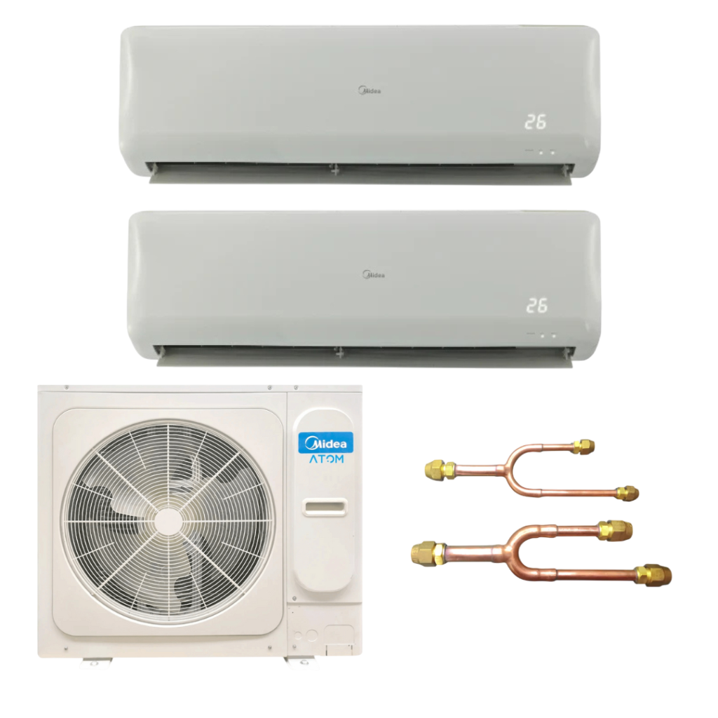 Sistema Mini VRF Midea Atom que consiste en: -Unidad condensadora Midea Atom 36000 BTU Modelo: MDVC-V36W/DHN1 -2 Unidades evaporadoras Midea Atom 18000 BTU Modelo: MDV-D18G/VN1-M – Derivador tipo Y Modelo: DXFQT2-02